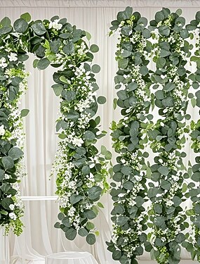 Набор из 2-4 гирлянд из эвкалипта, общая длина 141,73 дюйма, украшенных белыми цветами, листьями в форме доллара и реалистичными зелеными лозами, подходит для свадебного и праздничного декора,
