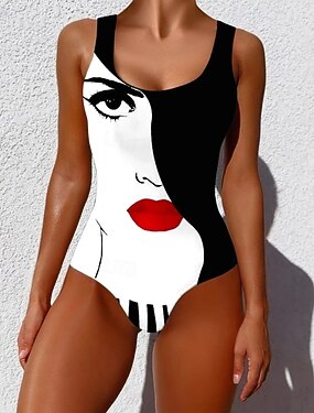 Женский купальник в один предмет стройнящий монокини бикини контроль живота высокая талия тонкий без спины отпуск винтажный оμβре графический u-образный вырез без рукавов