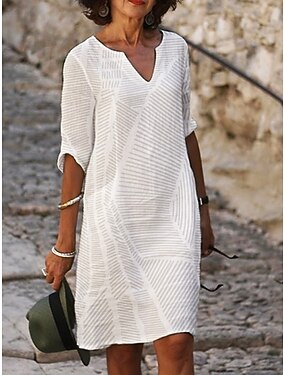 Жен. Мини-платье Искусственный хлопок и лен Платье прямого кроя Повседневное платье Платье с принтом Мода Современное Повседневные Пляж выходные Стандартный Линии Рукав 3/4 Разделенная шея Белый