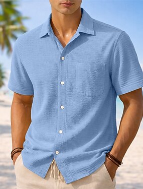 Муж. Рубашка Текстура Повседневная рубашка Кнопка рубашка Рубашка из сирсакера Синий Темно-коричневый Черный Белый Бордовый С короткими рукавами Полотняное плетение кубинский воротник