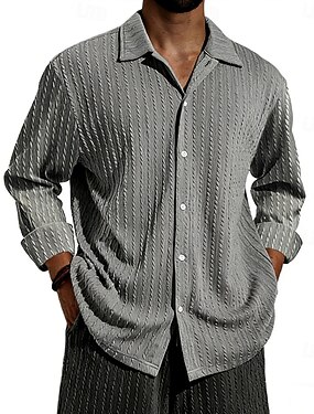 Муж. Рубашка Вафельная рубашка Текстура Повседневная рубашка Кнопка рубашка Черный Белый Розовый Зеленый Хаки Длинный рукав Полотняное плетение Рубашечный воротник Повседневные Уличная одежда Одежда