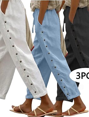 Жен. Повседневные брюки Летние штаны 100% хлопок Брюки Отпуск Классический На каждый день По щиколотку Средняя талия Полотняное плетение Боковые карманы Боковая кнопка Комфорт Воздухопроницаемость