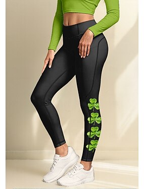 Святой Патрик Жен. леггинсы для пилатеса Штаны для фитнеса Леггинсы для спортивного зала Карманы Гербовый сбор Боковые карманы Пилатес Тренажерный зал Тренировка в тренажерном зале