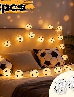 2 шт. 2-метровая гирлянда из 10 светодиодов в форме футбольного мяча – теплый белый свет, с батарейным блоком, для спальни, гостиной, вечеринки, фан-клуба, спортивного декора, Рождества, праздничного