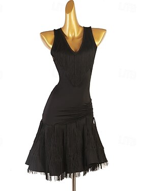Элегантное черное платье для латиноамериканских танцев с бахромой для женщин - бальный костюм для сальсы и танго без рукавов с V-образным вырезом