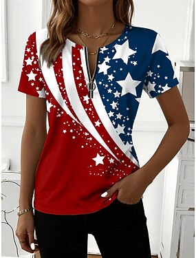 100% хлопок День независимости США Дети Девочки Черный Белый США Футболка Вырез под горло С короткими рукавами Повседневные на открытом воздухе Отпуск Классика На каждый день С принтом Лето