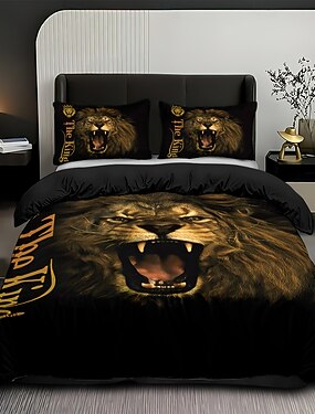 Комплект постельного белья из 3 предметов с принтом «Король Лев»: пуховое одеяло, постельное белье для гостиничной спальни, удобный комплект для двуспальной кровати, мягкий флисовый комплект из 3