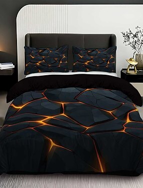 Комплект из 3-х пуховых покрывал с флуоресцентным рисунком в виде желтого камня для двуспальной кровати, мягкий короткий плюшевый пододеяльник с 2 наволочками – постельное белье для гостиничной