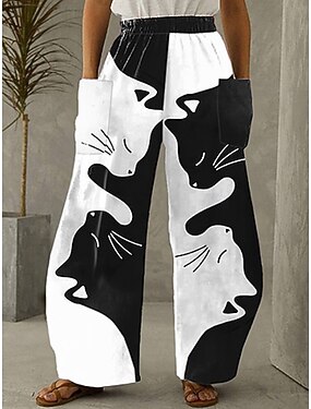 Жен. Нахальный Брюки Мода Уличный стиль Полная длина Средняя талия Цветы Эластичная талия Рисунок удобный Удобный на открытом воздухе Отпуск Для улицы Черный Белый Синий Лето Стандартный