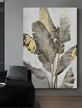 Картина маслом ручной работы на холсте, настенное украшение, черно-белые простые золотые банановые листья для декора дома, столовой, рулонная картина без рамы, не натянутая