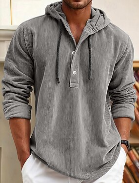 Муж. Рубашка Повседневная рубашка Вельветовая рубашка Синий Белый Темно синий Темно-Серый Длинный рукав Полотняное плетение Капюшон Повседневные На выход Капюшон Одежда