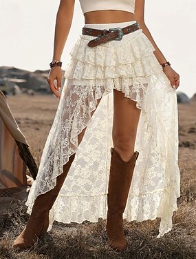 Жен. Кружевная юбка Мода Секси На каждый день Ассиметричное Со стандартной талией Подол Кружева Неэластичная Повседневные Пляж Абрикосовый Черный Белый Лето Полиэстер