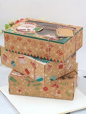 9 подарочных коробок для рождественского печенья с прозрачным окошком — крафтовые коробки для имбирных пряников, которые можно использовать в качестве сувениров на праздничные вечеринки, упаковки