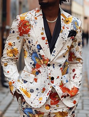 Муж. Пальто Блейзер Бизнес На каждый день Английский Все сезоны 100% полиэстер Графика 3D печать Пуговицы Удобный Однобортный крой Блейзер Черный Белый Синий