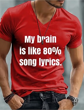 Мужская футболка с надписью "Мой мозг на 80% состоит из текста песни", забавная, для любителей музыки, саркастическая, юмористическая, с графическим принтом, V-образным вырезом, коротким рукавом, для