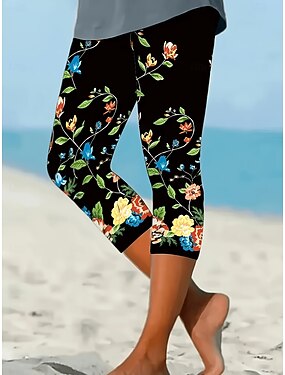 Жен. Чино Леггинсы Отпуск Винтаж Уличный стиль Капри Завышенная Цветочный принт Графика Рисунок Комфорт Мягкий Удобный Эластичная Повседневные на открытом воздухе Отпуск