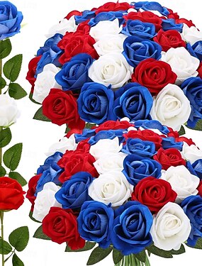 24 искусственные розы для украшения ко Дню независимости 4 июля, патриотическая цветочная композиция в красно-бело-синих тонах, реалистичные розы из бархатного шелка, продаются оптом для центральных