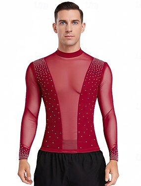 Топы для фигурного катания Муж. Катание на коньках Топы Черный Белый Красный Пэчворк Эластичность Учебный Соревнование Одежда для фигурного катания Классика Стразы Длинный рукав