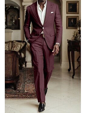 Мужской Смокинги Льняные костюмы Свадьба на пляже Весенняя свадьба Белый Бордовый Весна лето Костюм Лацкан с тупым углом Для вечеринки Легкие Однотонный Узкий крой Набор из 2 предметов