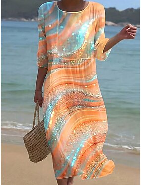 Жен. Платье средней длины Платье в стиле бохо Платье A-силуэта Летнее платье Плиссированное платье Элегантный стиль Мода Современное Повседневные на открытом воздухе Пляж Свободное облегание