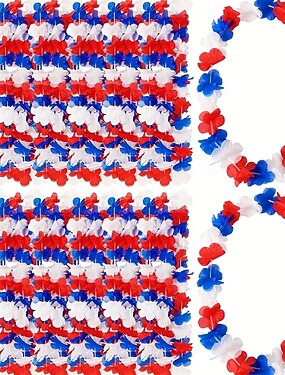 30 штук патриотических искусственных цветов - красно-бело-синие гавайские леи с изображением ананаса и щита, украшения ко Дню независимости 4 июля, оптовые подарки для вечеринок на открытом воздухе/в