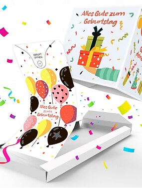 Подарочная коробка-сюрприз «С днем рождения» с разноцветными воздушными шарами. &Конфетти-дизайн - яркая поделка из бумаги для детей, идея подарка на праздник | игривый дизайн | красочные воздушные