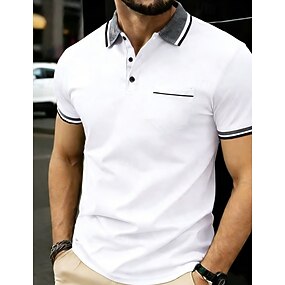 Муж. Поло Рубашки поло Повседневные Для улицы Лацкан С короткими рукавами Классический Современное Контрастных цветов Карман Пуговицы Лето Весна Стандартный