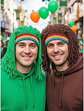 Мужская вязаная шапка-парик из пряжи, разноцветная, с зелеными, красными и желтыми полосами, идеально подходит для Дня Святого Патрика и костюмированных вечеринок.