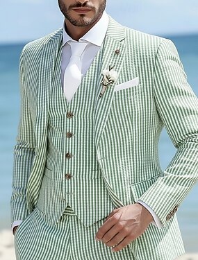Мужской Смокинги Костюмы из сирсакера Свадьба на пляже Весенняя свадьба Розовый Небесно-голубой Весна лето Костюм Лацкан с тупым углом Повседневные Для вечеринки Полоски Узкий крой Набор из 2