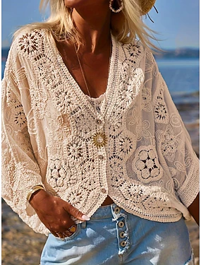 Жен. Вафельная рубашка Сплошной цвет Элегантный стиль Активный Отпуск Рукав до локтя V-образный вырез Длинные топы Повседневные на открытом воздухе Уличная одежда