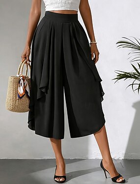 Жен. Штаны Брюки-капри Повседневные брюки Летние штаны Элегантный стиль Мода На каждый день До щиколотки Завышенная Сплошной цвет Полотняное плетение Многослойный Широкие Эластичный пояс