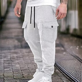 Муж. Спортивные штаны-карго Штаны Бегун Повседневные брюки Кулиска Эластичная талия Карман на молнии Однотонный Влагоотводящие Дышащий Полная длина на открытом воздухе Повседневные Бег