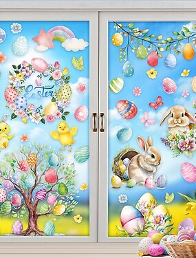 Набор из 9 наклеек на окна и стены с пасхальными изображениями, пасхальные яйца, кролики и птички, декоративные наклейки на витрины магазинов, наклейки на стекло для создания праздничной атмосферы.