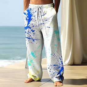 Муж. Штаны Летние штаны Пляжные штаны Эластичный шнурок Передний карман Прямая нога Графические принты Пламя Комфорт Мягкий Повседневные Для отдыха Лен как ткань Мода Оригинальный рисунок