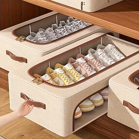 2 упаковки органайзера для обуви под кроватью, 24 отделения, решение для хранения обуви под кроватью с прозрачным окном, дышащий, складной тканевый контейнер-короб с усиленными ручками