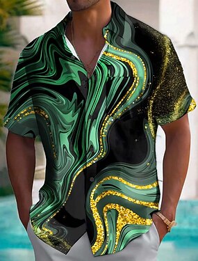 Муж. Геометрический принт Абстракция Мрамор Рубашка Летняя рубашка Кнопка рубашка С короткими рукавами Мода Повседневная на открытом воздухе Отпуск На каждый день Лето Весна Отложной 3D
