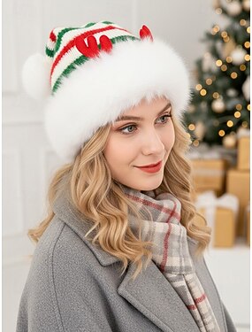 женская рождественская полосатая шапка с оленьими рогами – материал полиэстер, праздничный дизайн для праздничных вечеринок и зимней одежды