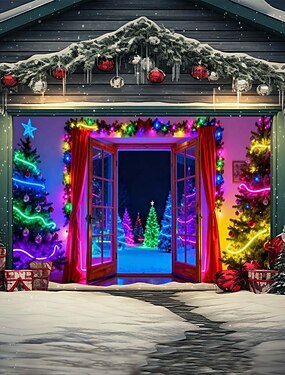 Рождественский декоративный навес для гаражных ворот – праздничное украшение, рождественский пейзаж, снег, зима, Санта, гаражные занавески для наружной части дома