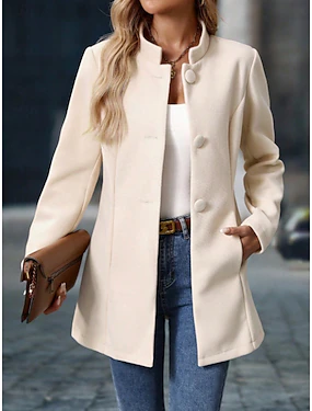 Жен. Зимняя куртка Удобный Дышащий Карман Пуговицы Элегантный стиль На каждый день Полотняное плетение Отпуск Для улицы Повседневные На каждый день Однобортный крой Обычная Воротник-стойка Стандартный