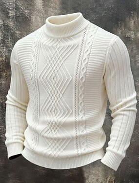 Муж. Вязаная ткань Пуловер Свитер Рельефный узор Кабель Вязать Обычные топы Трикотаж Облегающий крой Полотняное плетение Вырез под горло Вязаная одежда Современный Повседневные На каждый день Одежда