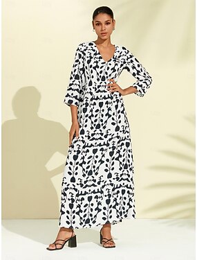 шифоновое геометрическое узорное платье с y-образным вырезом, повседневное макси-платье
