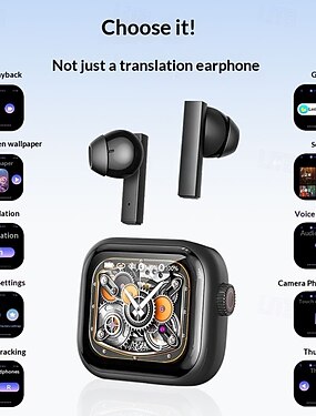 Наушники с функцией перевода с помощью ИИ, беспроводные наушники Bluetooth 6.0 с синхронным переводом. &Запись и транскрипция, зарядный чехол в стиле смарт-часов, аудио высокого разрешения для деловых