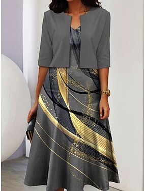 Комплекты платьев для женщин из двух предметов. Платье миди с жакетом элегантное платье А-силуэта с полуперевязками повседневное полуформальное омбре графический принт вырез в форме буквы V