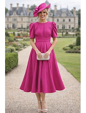 А-силуэт Футляр До колена Платье Дерби Платье для матери невесты С короткими рукавами V-образный вырез Элегантный стиль Винтаж Дерби в Кентукки Эластичная ткань с Пуговицы Один цвет