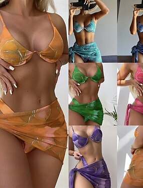 Женский бикини 3 часть купального костюма шорты стройный без спинки отпуск пляжная одежда цветочный графический V-образный вырез без рукавов купальные костюмы с длинными рукавами