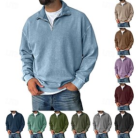 Муж. Толстовка Натяни Толстовка с застежкой-молнией Винно-красный Черный Светло-зеленый Темно синий Темно-зеленый Воротник-стойка Полотняное плетение Половина почтового индекса