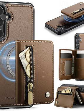 телефон Кейс для Назначение SSamsung Galaxy S26 S26 Плюс S26 Ультра Кейс на заднюю панель С Магсейф со стендом Съемный Поддержка беспроводной зарядки Ретро Кожа PU