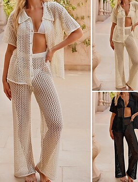 Жен. Купальники Накидка Купальное платье купальник Аппликация Отпуск Одежда для пляжа Сплошной цвет Круглый вырез Длинный рукав Купальники