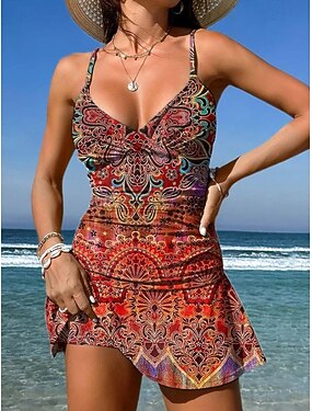 Жен. Нормальная Купальники Танкини 2 шт. Шорты купальник Рюши 2 предм Рисунок Графика Одежда для пляжа лето Купальники