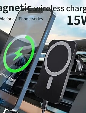 Автомобильное беспроводное зарядное устройство с быстрой зарядкой, магнитное крепление для вентиляционной решетки автомобиля, совместимое с телефонами Apple и Android